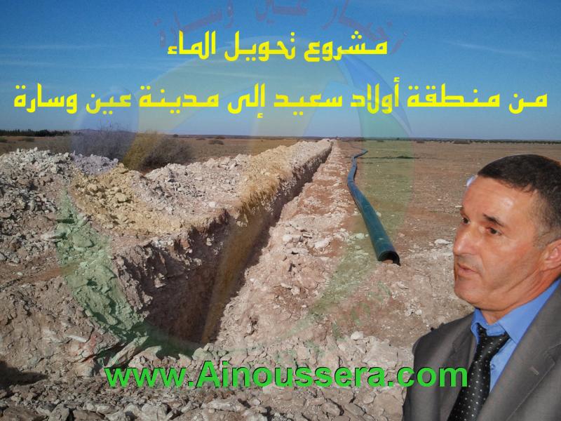 أكد المدير الولائي للموارد المائية بولاية الجلفة لأخبار عين وسارة على هامش انعقاد الدورة العادية للمجلس الشعبي الولائي أن مشروع تحويل الماء الشروب من منطقة أولاد سعيد إلى مدينة عين وسارة ستنتهي الأشغال به ويكون قيد الخدمة قبل شهر رمضان المعظم ، وتأتي هذه التأكيدات لطمأنة ساكنة الأحياء الشرقية لمدينة عين وسارة أن الأشغال انتهت وبقي الربط بالكهرباء فقط لتشغيل هذه الآبار.